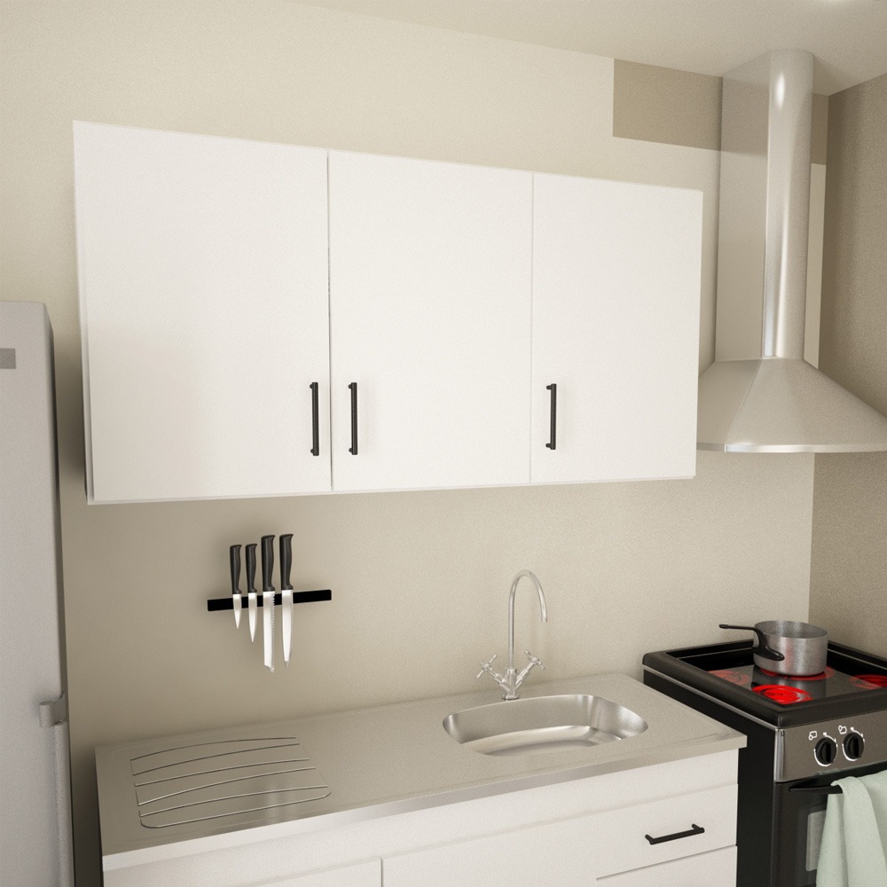 De líneas sencillas, esta alacena funcional combina con todo tipo de cocina. En su interior estantes, en su exterior manijas de pvc simil aluminio.