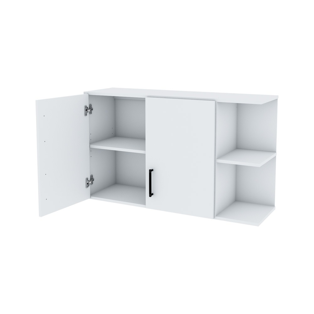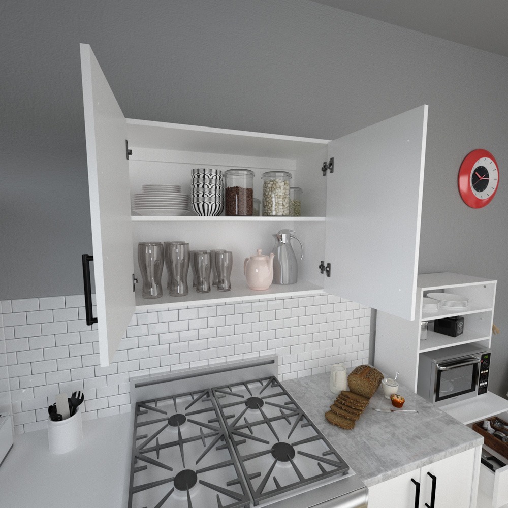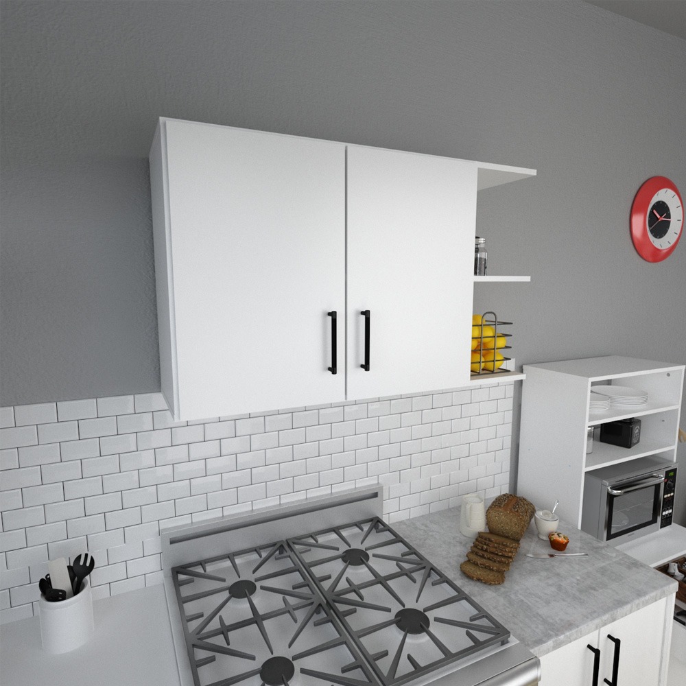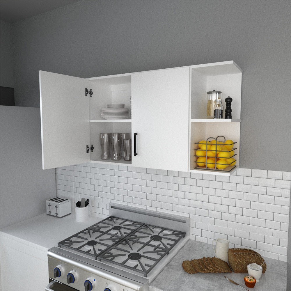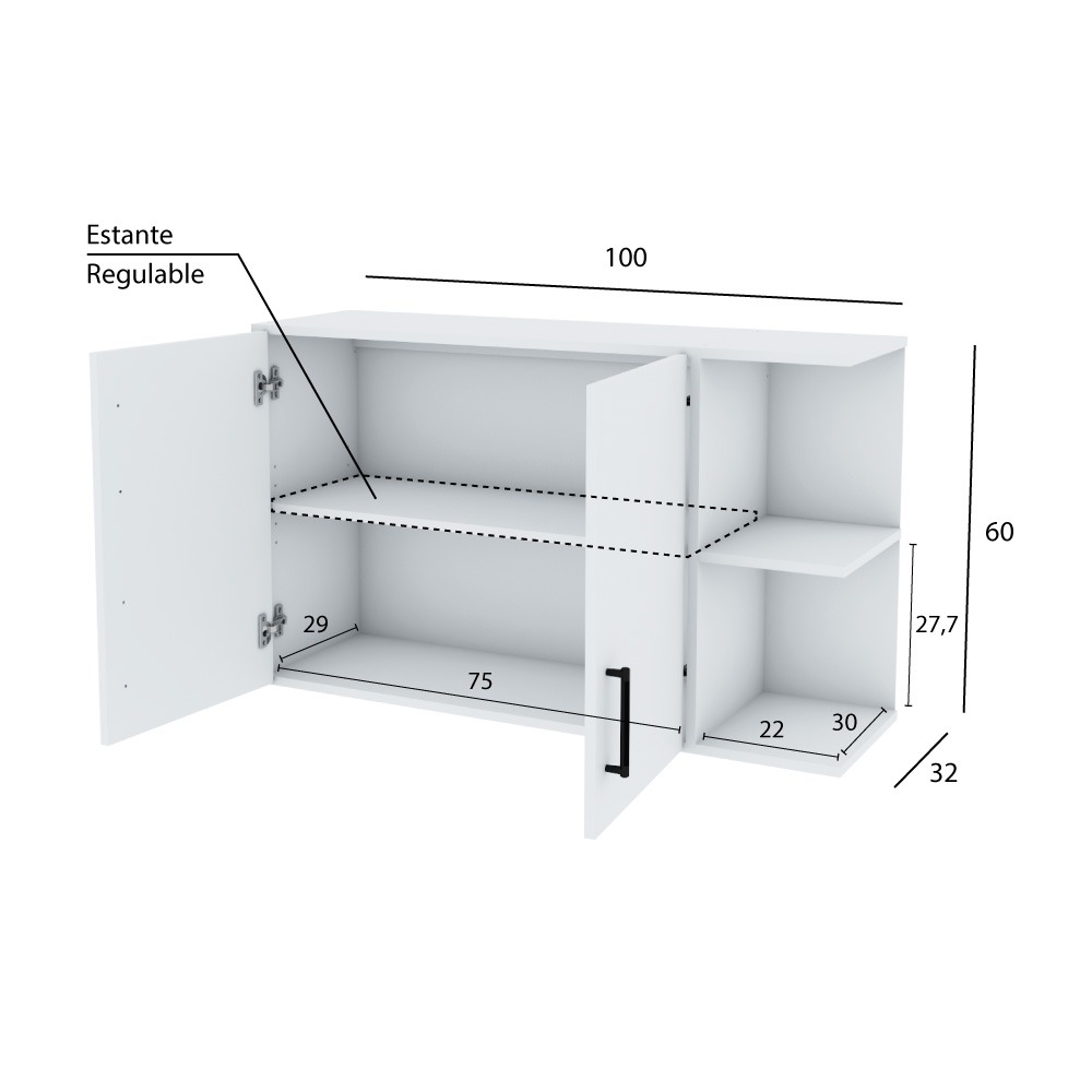 Mueble alacena de dos puertas y estante lateral, ideal para organizar y complementar tu cocina. Su diseño permite una fácil colocación y combinación con otros muebles.