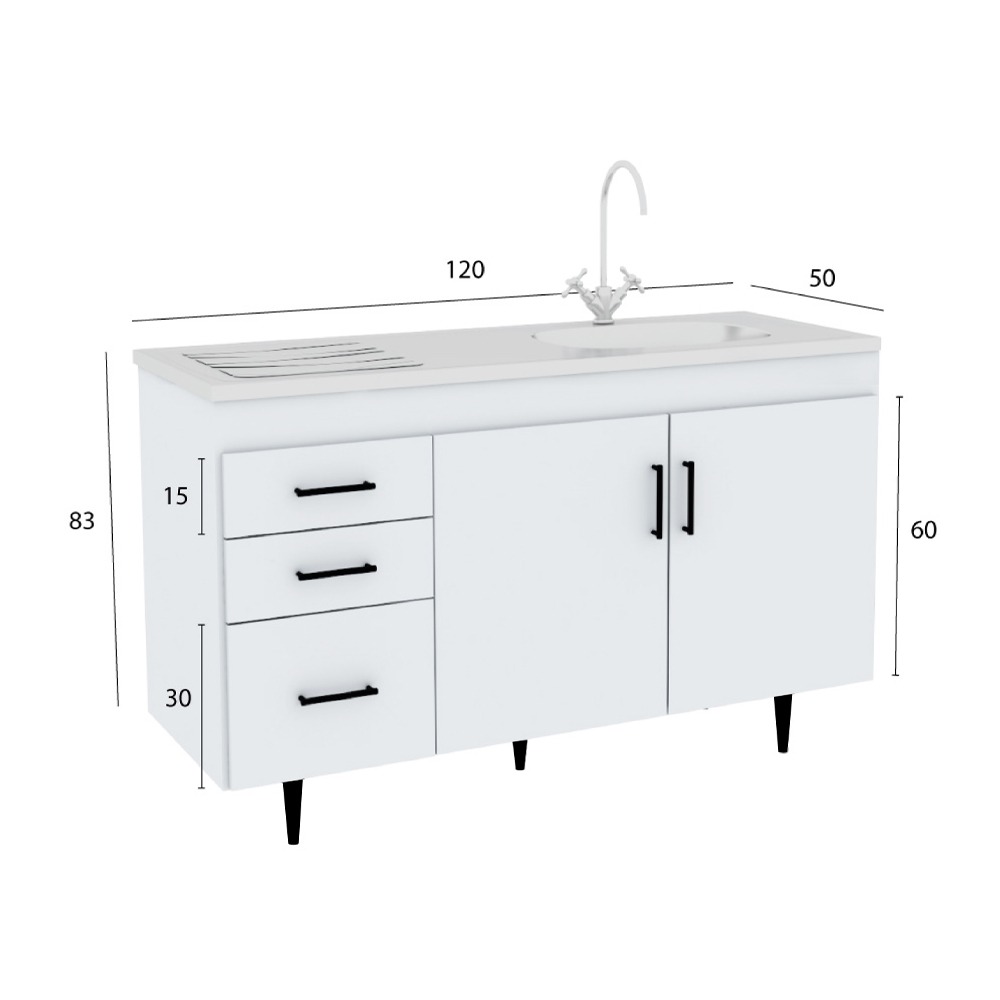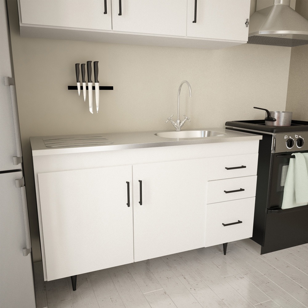 Bajo Mesada Centro Estant 3 Cajones 2 Puertas 120 Cm BM121BL