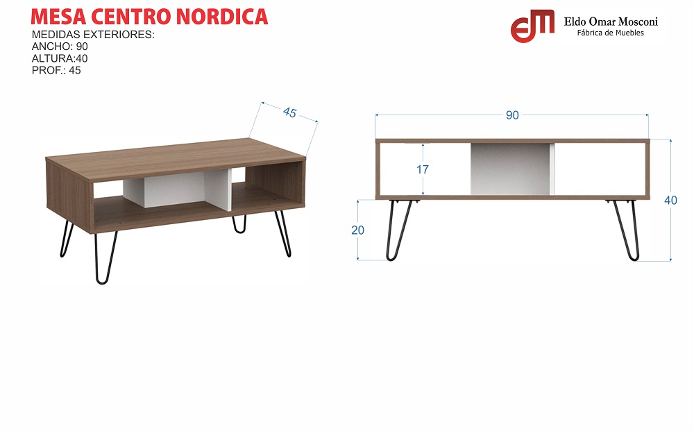 Mosconi Nórdico mesa de centro 90x45x40cm