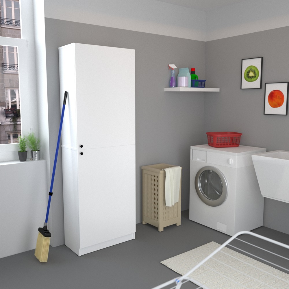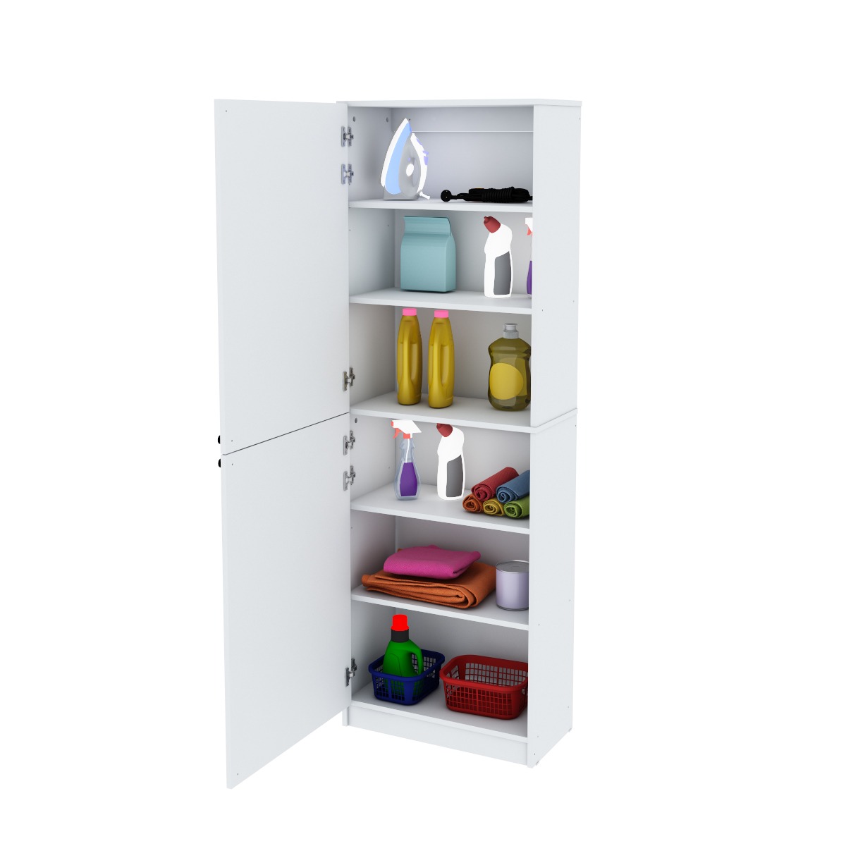 Mueble organizador para tu cocina o lavadero. Contiene estantes 5 amplios, con 2 puertas.