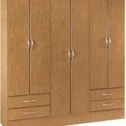 Este producto presenta un compartimento central y dos laterales. Además de las cuatro cajoneras en su parte externa cuenta con tres estantes en el interior y barrales para colgar prendas delicadas. Su color en tonalidad roble lo convierte en una opción clásica para cualquier tipo de ambiente. ¡Súper práctico para mantener toda tu vestimenta ordenada y al alcance de tu mano! Importante: Se entrega desarmado, en 2 cajas de 112,10 Kg en total, con manual de instrucciones para lograr un fácil armado.