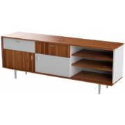 Elegí para tu TV un mueble con un diseño que combina dos materialidades. A través de una serie de cajones y estantes, este modelo esconderá a la perfección todos tus dispositivos para que puedas concentrarte en la diversión.