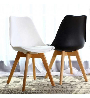 Descubre la elegancia y el confort de las Sillas Tulip, inspiradas en el icónico diseño Eames. Estas sillas son perfectas para cualquier comedor o espacio de living, combinando un asiento de polipropileno con un suave almohadón de ecocuero que brinda una experiencia de asiento placentera. La base y las patas están elaboradas en madera maciza de haya, asegurando durabilidad y estabilidad. Con medidas de 45x50x80 cm, estas sillas son ideales para adaptarse a diferentes ambientes. Disponibles en sofisticados colores blanco y negro, se integran fácilmente en cualquier decoración. Además, cada silla soporta un peso máximo de 120 kg, garantizando su resistencia. Ten en cuenta que requieren ensamblado, lo que permite un fácil transporte y almacenamiento. Con un diseño moderno y funcional, las Sillas Tulip son la opción perfecta para quienes buscan estilo y comodidad en su hogar.